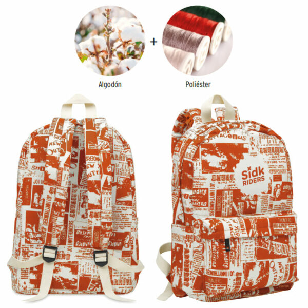 Mochilas de poli algodón impresas a todo color.